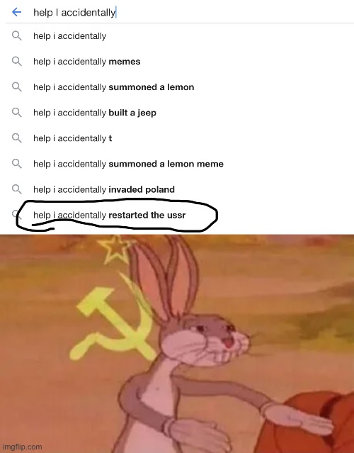 If you find this site serviceableness, please support us by sharing this posts to your preference social media accounts like Facebook, Instagram and so on or you can also Download this blog page with the title Bugs Bunny Communist Meme Generator by using Ctrl + D for gadgets a laptop with a Windows operating system or Command + D for laptops with an Apple operating system. If you use a smartphone, you can also use the drawer menu of the browser you are using. Whether it's a Windows, Mac, iOS or Android operating system, you will still be able to bookmark this web.